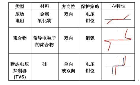 安森美半導(dǎo)體來自美國(guó)的ESD保護(hù)專家Robert Ashton博士說,一般而言,ESD保護(hù)元件的分類可以通過其保護(hù)策略與方向性來進(jìn)行,主要包括壓敏電阻、聚合物和瞬態(tài)電壓抑 制器(TVS)等,如表1所示。在這幾種保護(hù)元件中,壓敏電阻在低電壓時(shí),呈現(xiàn)出高電阻,其中的每個(gè)小型二極管兩端的電壓都相當(dāng)?shù)?,同時(shí)電流也相當(dāng)??;而在較高電壓時(shí),其中的獨(dú)立二極管開始導(dǎo)通,同時(shí)壓敏電阻的電阻會(huì)下降。從表1中我們也可以看出壓敏電阻為雙向保護(hù)元件。而對(duì)于帶導(dǎo)電粒子的聚合物而言,在正常電壓下,這些材料擁有相當(dāng)高的電阻,但當(dāng)發(fā)生ESD沖擊時(shí),導(dǎo)電粒子間的小間隙會(huì)成為突波音隙陣列,從而帶來低電阻路徑。