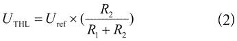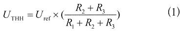 式(1)和式(2)是理論上的公式,實(shí)際上,為了將上述的滯回原理應(yīng)用于實(shí)際的電池系統(tǒng),還要考慮一個(gè)參考電壓的問(wèn)題。參考電壓Uref是不能變的,否則上下電壓門(mén)限就會(huì)發(fā)生變化。而且參考電壓是由電池電壓供電產(chǎn)生的,它必須比電池電壓低的多,而且功耗極小。