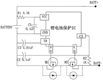 圖1鋰電池保護(hù)IC的典型應(yīng)用電路