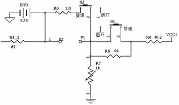 根據(jù)鋰電池保護(hù)IC的工作原理設(shè)計(jì)的測(cè)試電路如圖2所示,圖3詳細(xì)說(shuō)明了圖2中模塊B的電路。模塊A在測(cè)試過(guò)流保護(hù)時(shí)為CS引腳提供電壓,模擬圖1中的CS引腳所探測(cè)到的電壓。調(diào)整模塊中的可變電位器可為CS引腳提供可變電源,控制其中的跳變開(kāi)關(guān)可為CS提供突變電壓。模塊B為電源,模擬為IC提供工作電壓。調(diào)整電路中的可變電位器R7可為整個(gè)電路提供一個(gè)可變電壓,在測(cè)試過(guò)充電保護(hù)電壓和過(guò)放電保護(hù)電壓時(shí)使用。控制模塊中的開(kāi)關(guān)S1的閉合為測(cè)試電路提供一個(gè)跳變電源,在測(cè)試IC的過(guò)充、過(guò)放和過(guò)流延遲時(shí)使用。