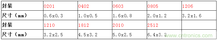 通過測量電阻體積的大小對應(yīng)相應(yīng)的封裝: