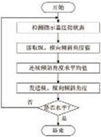 調(diào)平軟件完成讀取縱向與橫向傾斜角度值、模擬顯示水準(zhǔn)氣泡指示、計(jì)算并顯示左右千斤頂調(diào)整方向等功能,其工作流程如圖6所示,其中單片機(jī)讀取角度數(shù)據(jù)的流程如圖7所示。車(chē)體調(diào)平裝置端程序通過(guò)串口讀取到傾角傳感器的縱、向傾斜角度值,根據(jù)角度值分別計(jì)算出左、右千斤頂?shù)恼{(diào)整方向和模擬水準(zhǔn)氣泡的中心位置坐標(biāo),然后將這些值通過(guò)串行通信分別發(fā)送到左、右操縱指示器上。