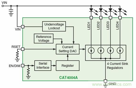 針對手機(jī)等便攜設(shè)備的LCD背光應(yīng)用,安森美半導(dǎo)體提供多款簡單線性白光LED驅(qū)動器。它采用單線式EZDim接口調(diào)光,有32級調(diào)光控制;25 mA固定電流(B版本)或可調(diào)節(jié)電流(A版本)。這些單模LED驅(qū)動器可作為系統(tǒng)級的一部分,用于設(shè)計(jì)整合低電壓LED和簡單LED驅(qū)動器的背光電路。