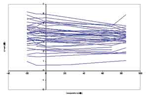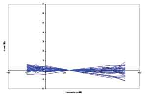帶隙基準源中的電流級存在一定的生產(chǎn)差異(productionvariation),使得25℃時的基準額定值、曲率形狀和曲線最平坦部分的位置都會發(fā)生各種變化,因此需要進行工廠校準,以盡量減小這種變化的影響,圖3所示為一個未校準基準源帶來的變化實例。在-20~+85℃的溫度范圍內(nèi),最高差異為-0.9~0.20%。而圖3則顯示有兩個離群點的曲線跟大多數(shù)其他器件的曲線有相當大的差異。