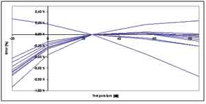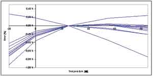 在固定溫度下獲得良好的測量精度并不困難,若在裝配電池組時已對BMU進行了校準便更容易。但實際情況中,電池組通常都會經(jīng)受各種溫度變化,所以溫度漂移是區(qū)分真正高性能BMU和普通BMU的關(guān)鍵參數(shù)。