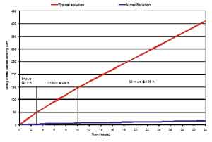 圖6所示為32小時內(nèi),一個10Ah電池的放電周期,分別是3h/1.5A,7h/0.6A,以及22h/60mA。溫度變化為±10℃,使用的是5mΩ的感測電阻。采用帶普通校準方法的標準BMU,電荷積聚中的誤差大于400mAh,在這個例子中相當于10Ah電池的4%以上。愛特梅爾的解決方案由于采用了整合有專有校準方法的靈活模擬設(shè)計,能夠大大提高精度。基于這些改進,誤差可被降至20mAh以下,相當于0.2%。