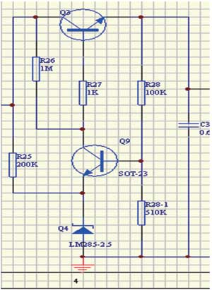 因?yàn)镾-8251芯片輸入電壓范圍是2.5~16V,總線輸入電壓范圍24V,必須先經(jīng)過(guò)降壓環(huán)節(jié),這將使變換效率大打折扣。降壓電路靜態(tài)功耗要小于幾十μA量級(jí),否則總線電流很難做到小于3.5mA。我采用MOSFET串聯(lián)降壓方式,基準(zhǔn)源沒(méi)有采用穩(wěn)壓二極管,而是使用LM385,做到靜態(tài)電流36μA。圖3為24V降壓到16V電路。