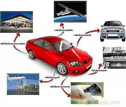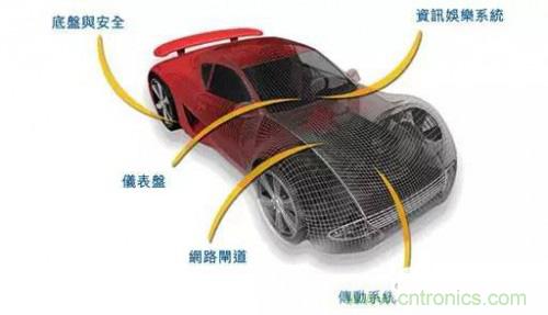 下圖顯示了當代汽車內部的部份電子系統(tǒng)。