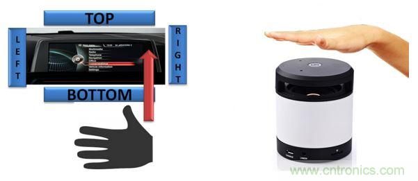 基于手勢(shì)的輕薄用戶界面─ 特殊的手勢(shì)在提高用戶體驗(yàn)方面發(fā)揮著關(guān)鍵作用。不同的手勢(shì)功能可幫助物聯(lián)網(wǎng)制造商區(qū)分其產(chǎn)品在市場(chǎng)上的地位。例如,一款無(wú)線藍(lán)牙揚(yáng)聲器可直接通過(guò)不同的手勢(shì)來(lái)控制音量、上下曲等。手勢(shì)功能已逐漸成為用戶界面最簡(jiǎn)單直觀的形式之一。智能手勢(shì)包括:向左右任意方向滑動(dòng)、單擊、雙擊、長(zhǎng)按鍵等等。設(shè)備可以由指定的用戶手勢(shì)“喚醒”,因此手勢(shì)功能不僅可以簡(jiǎn)化UI,而且還能夠降低功耗。