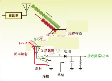 圖1:無源標(biāo)簽對(duì)射頻 RF能量進(jìn)行整流并調(diào)制信號(hào),然后反向散射反射給閱讀器。
