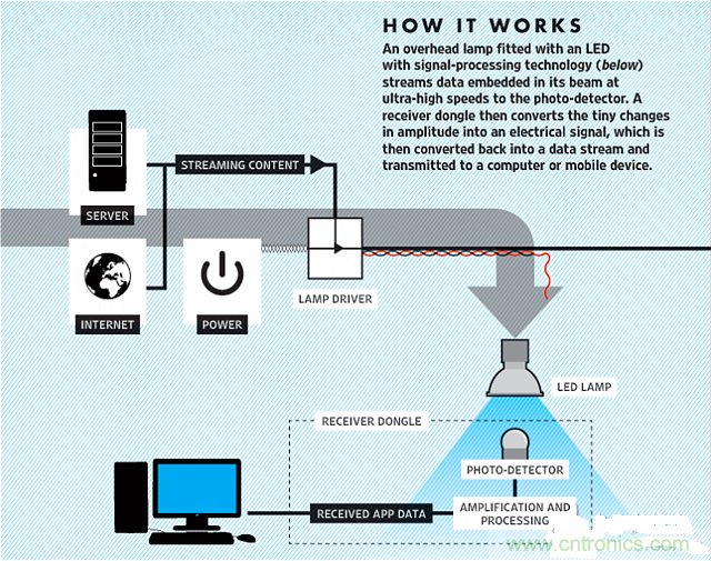 使用這種技術的LED燈泡不會出現視覺效果上的不同——光脈沖編碼的信息太微小,加上傳輸速度之快,肉眼是看不見的。此外,目前尚不清楚這種更快速的數據傳輸技術是否會增加LED燈和光學探測器的成本。